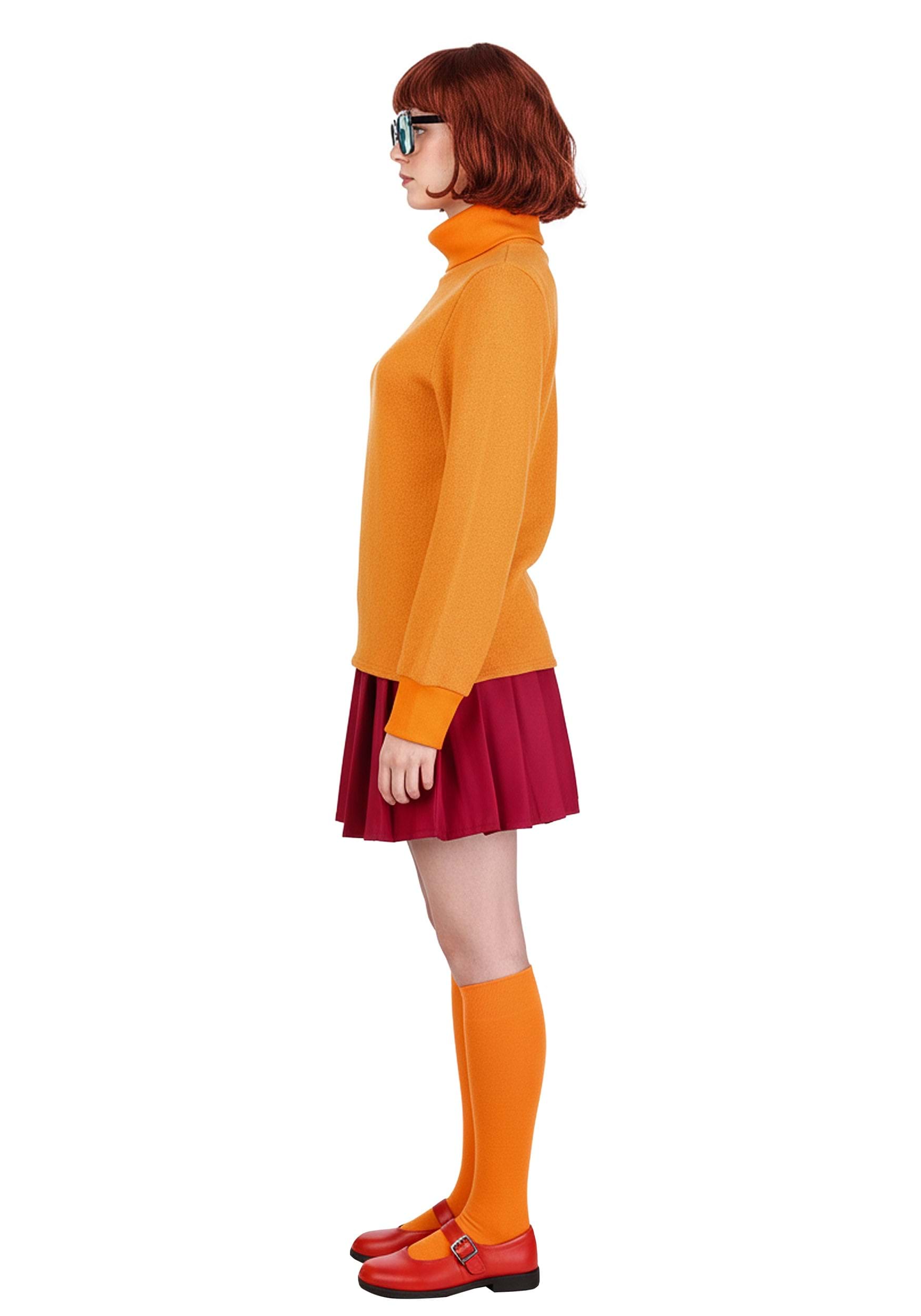 This is an exclusive Women's Deluxe Velma Scooby Doo Costume.