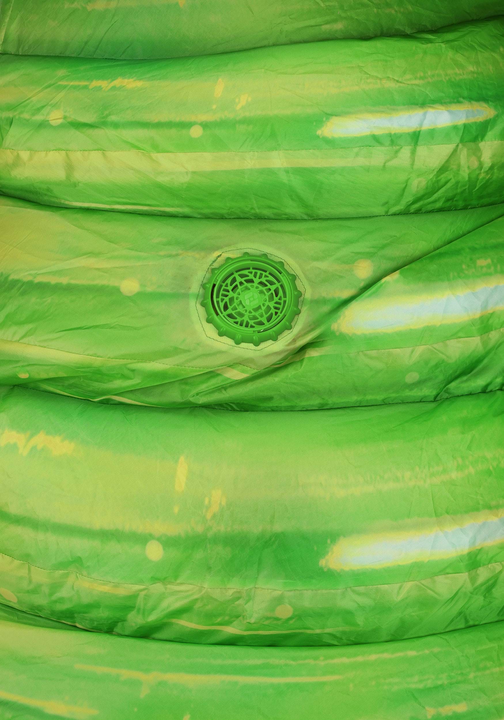 This officially licensed inflatable costume is crafted from windbreaker-style polyester fabric that holds an airtight seal when worn. Once zipped in, a small battery-operated fan inflates the costume in just minutes, transforming you into the big green blob himself. The fan remains on during wear to keep the shape full and bouncy from start to finish.