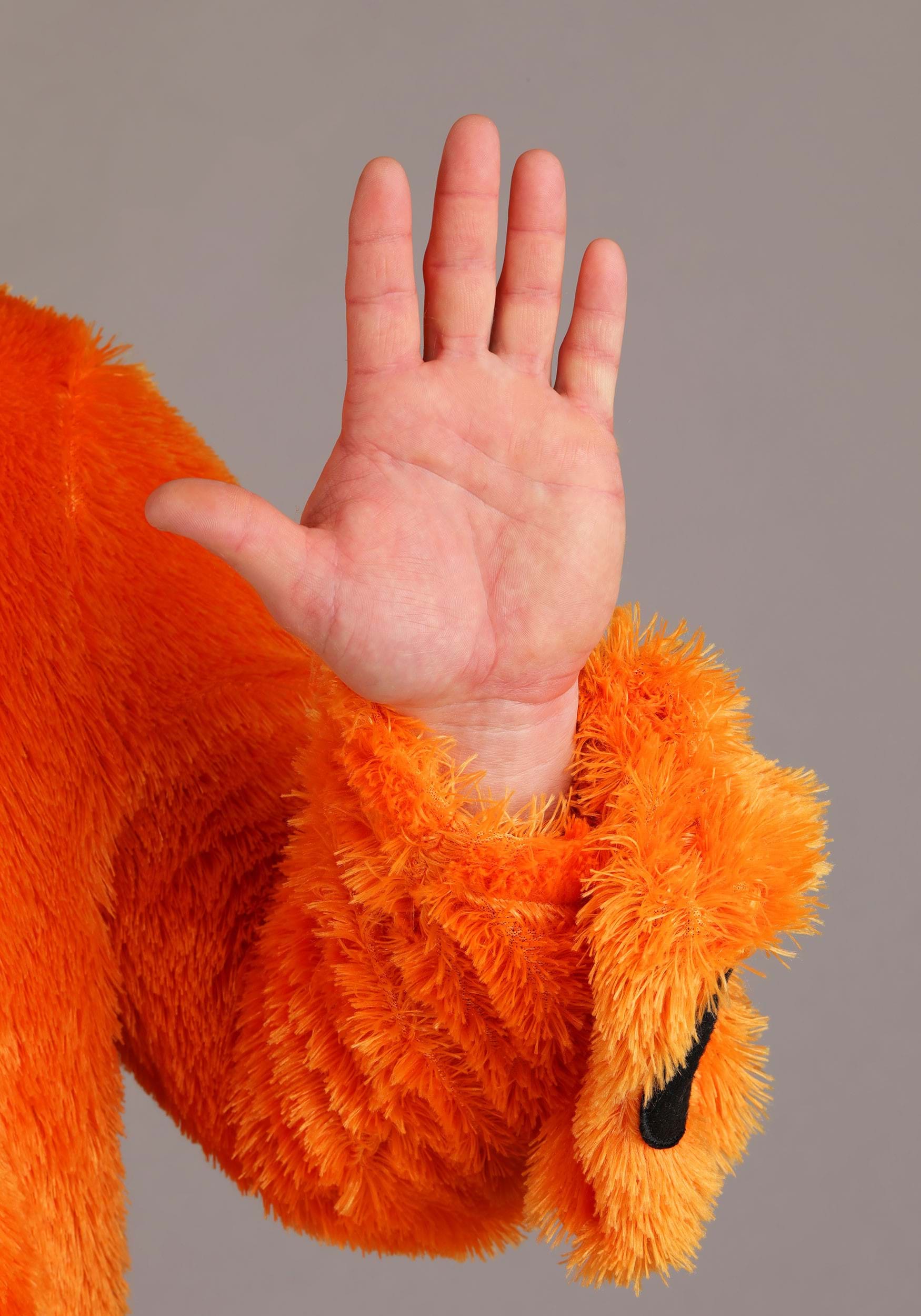 The hood has an embroidered bear face with little plush ears and a soft-sculpted nose, so your expression can stay spooky-sweet all night long. Built-in mitts flip back at the wrists, making it easy to hold a snack, a phone, or a suspiciously heavy trick-or-treat bucket. Shoe covers with elastic straps and stretchy ankle cuffs complete the look, ensuring your bear paws stay put from dusk 'til dawn.
