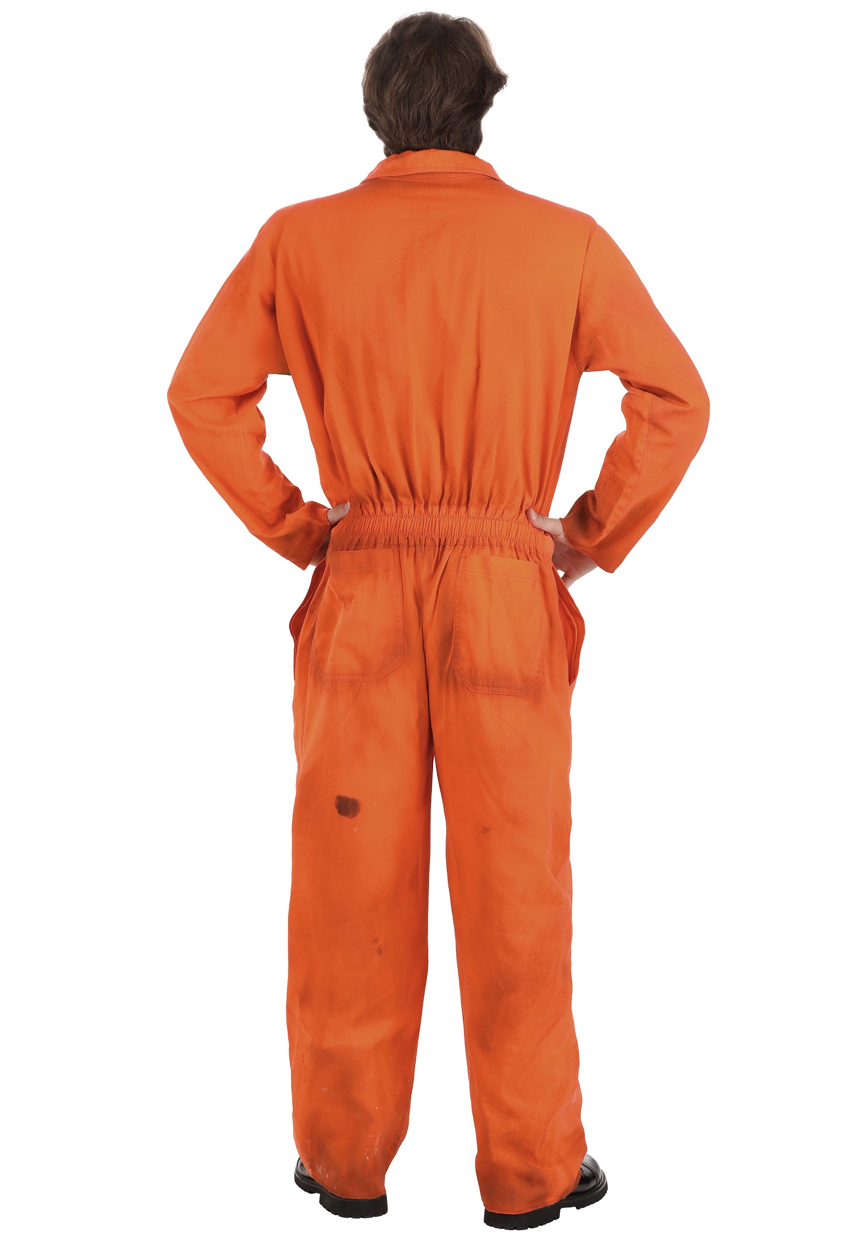 This is an exclusive Adult Distressed Prisoner Jumpsuit Costume.