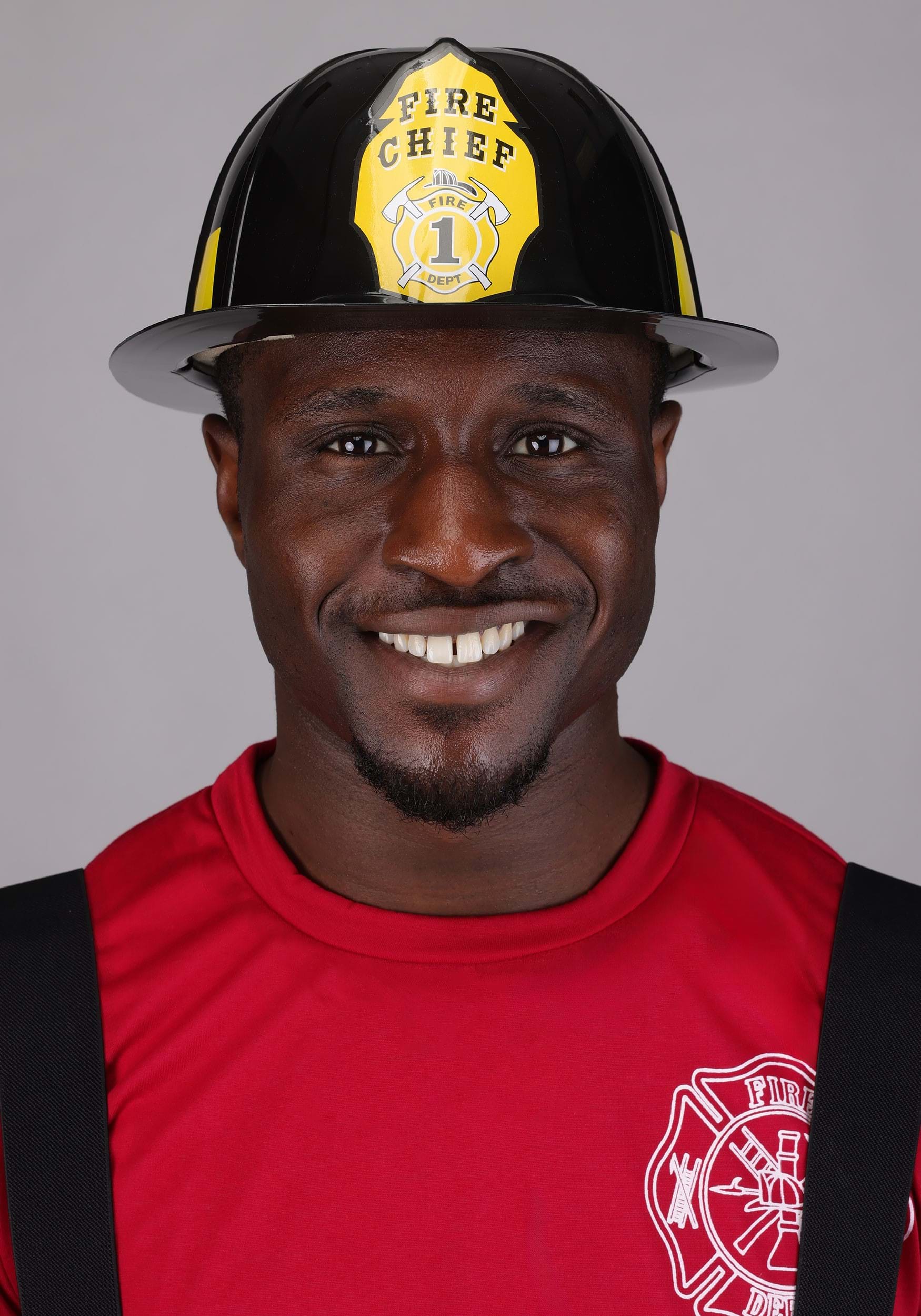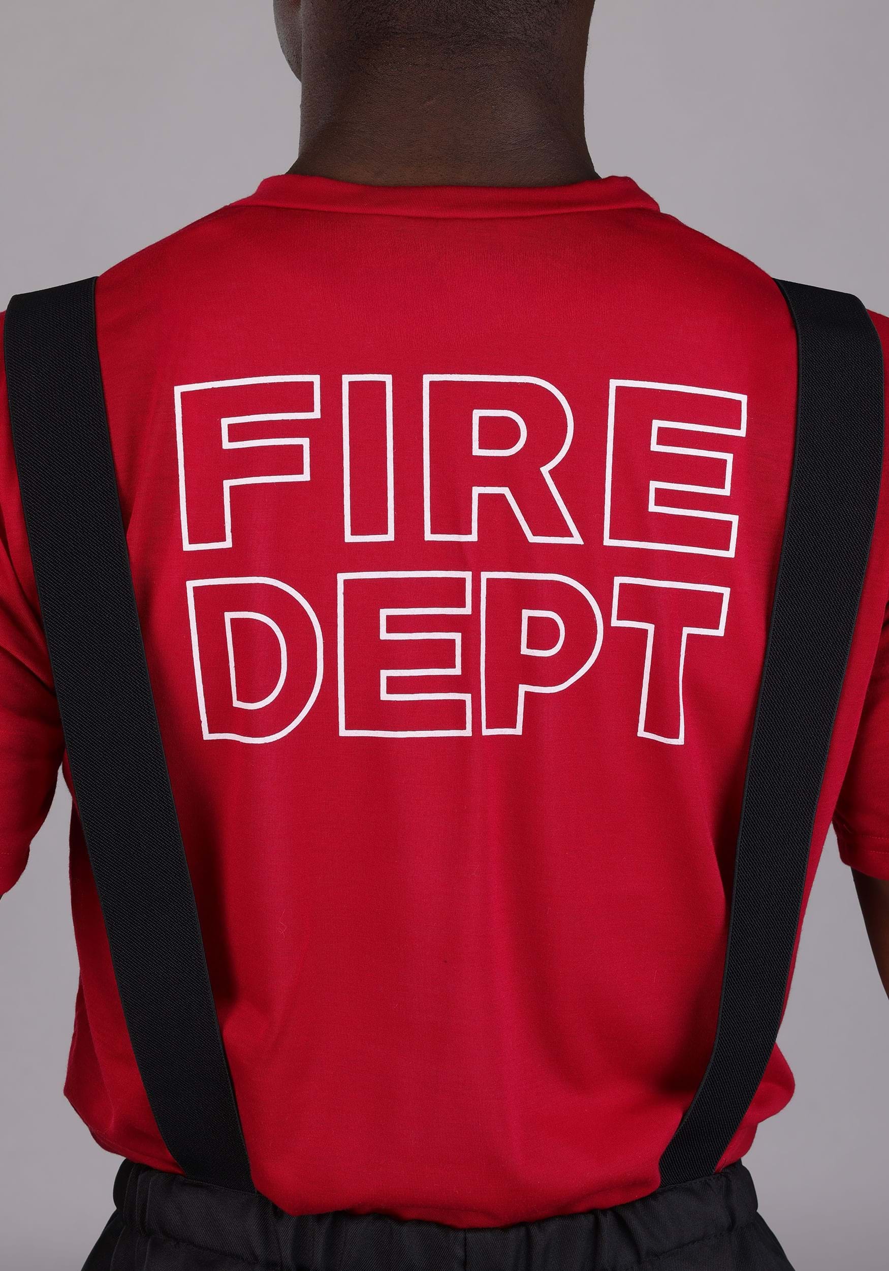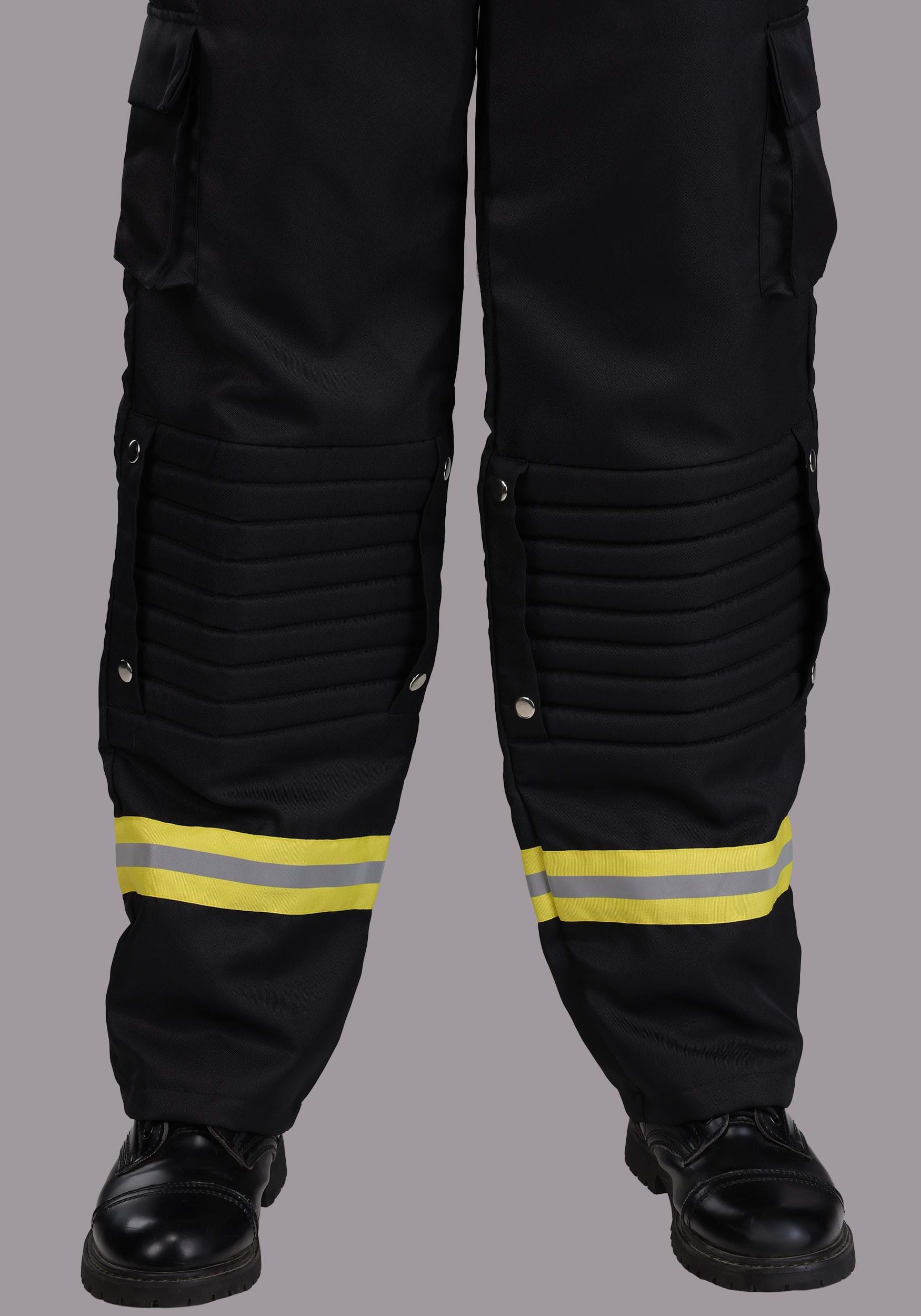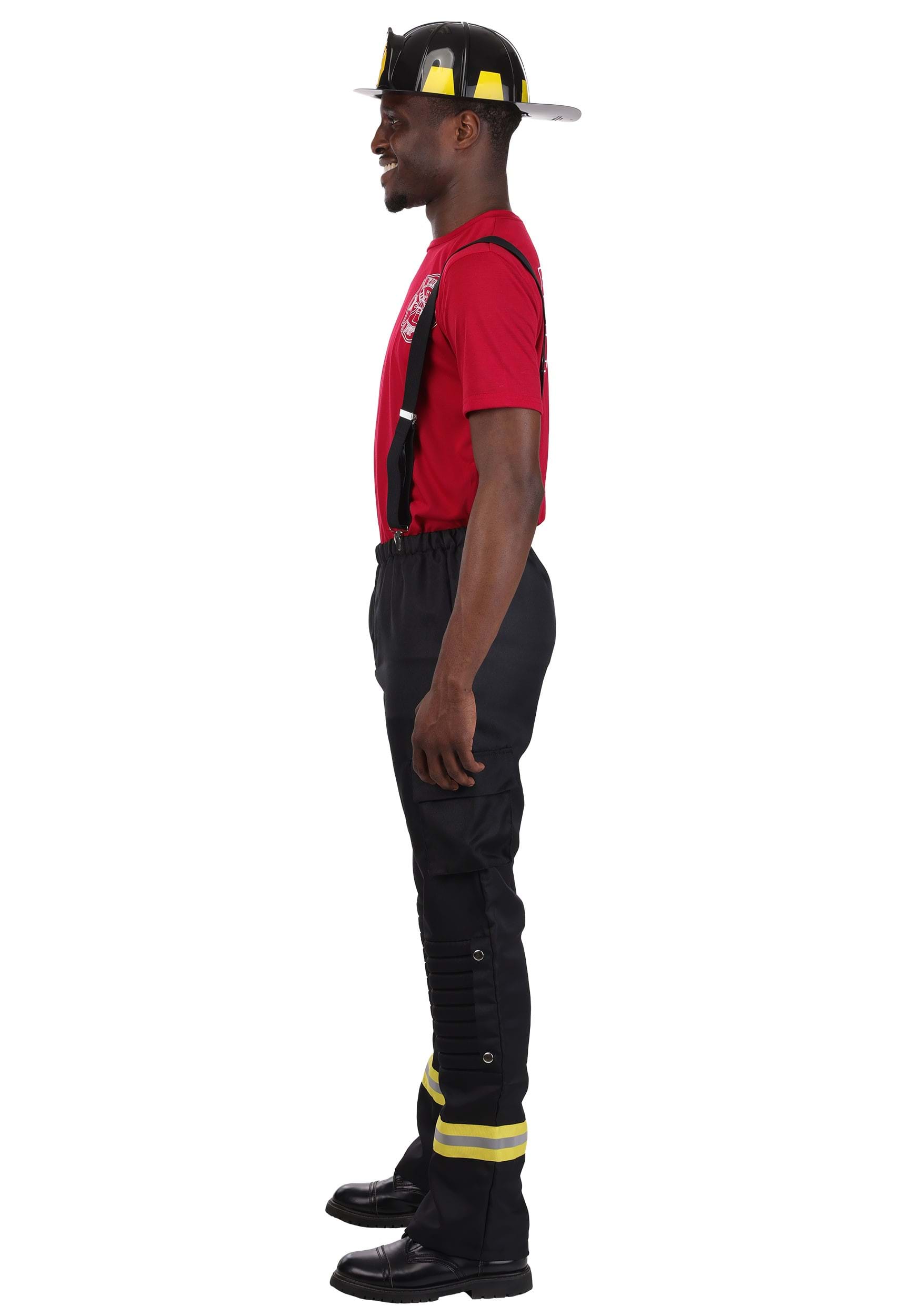 The costume includes a polyester t-shirt with a printed fire department emblem on the front and “FIRE DEPT” stamped on the back, just in case there was any confusion about who’s running the show. The matching pants feature attached, adjustable suspenders, an elastic waistband for snack-friendly flexibility, and cargo pockets for storing candy, keys, or your deeply heroic thoughts.
