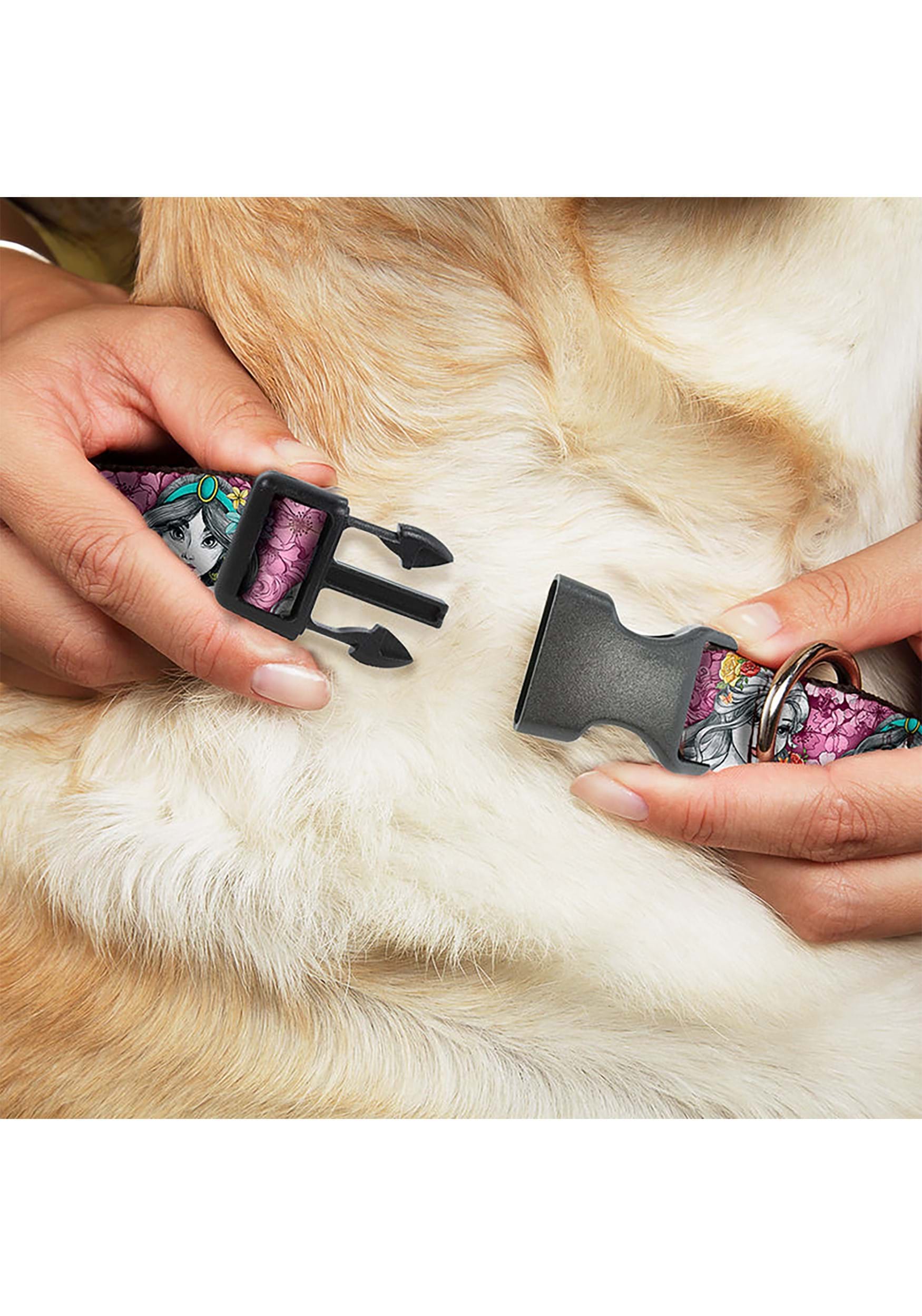 This is a Floral Princess Sketch Plastic Clip Pet Collar.