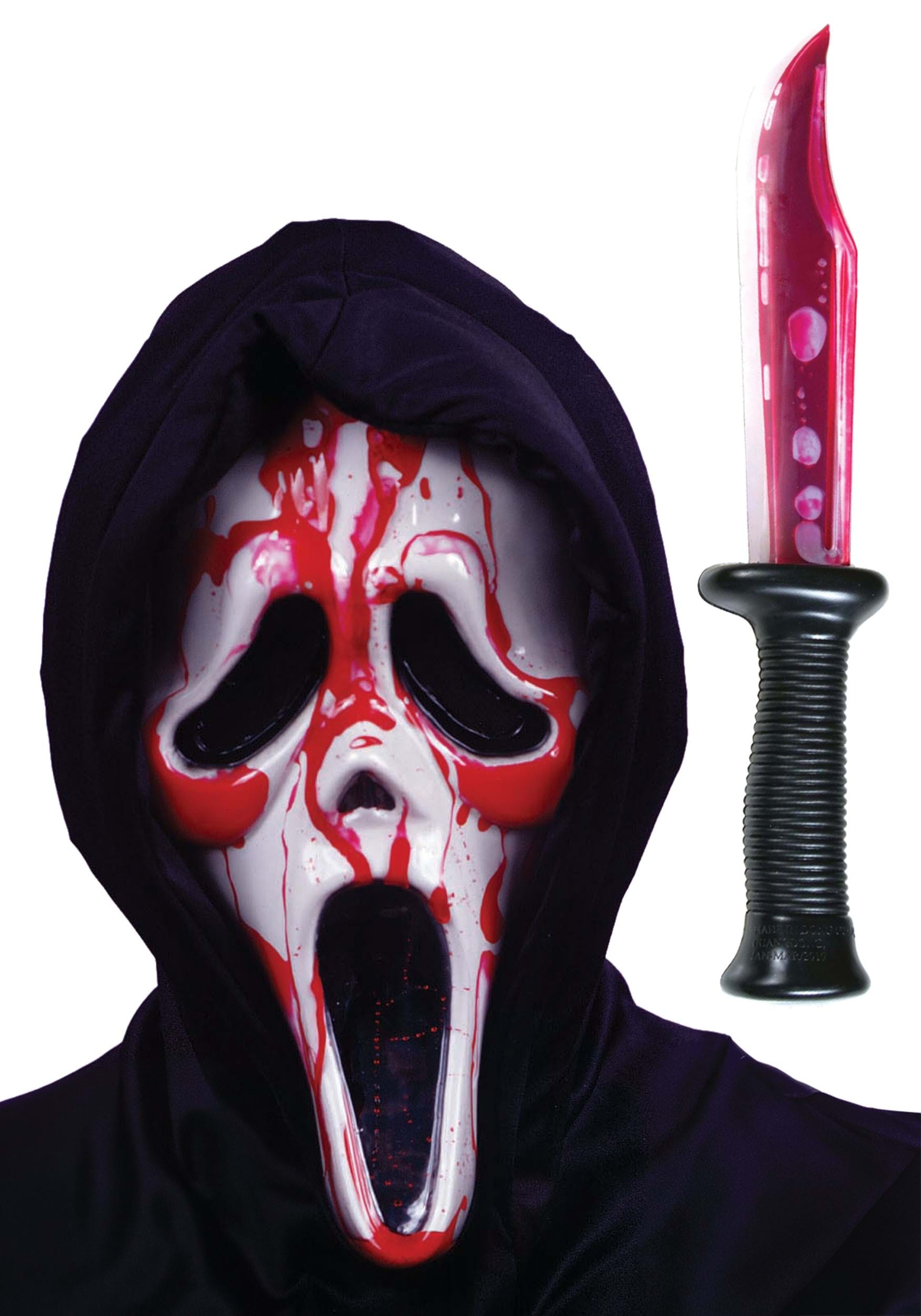 Adult Ghost Face Bleeding Mask with Knife Costume Kit