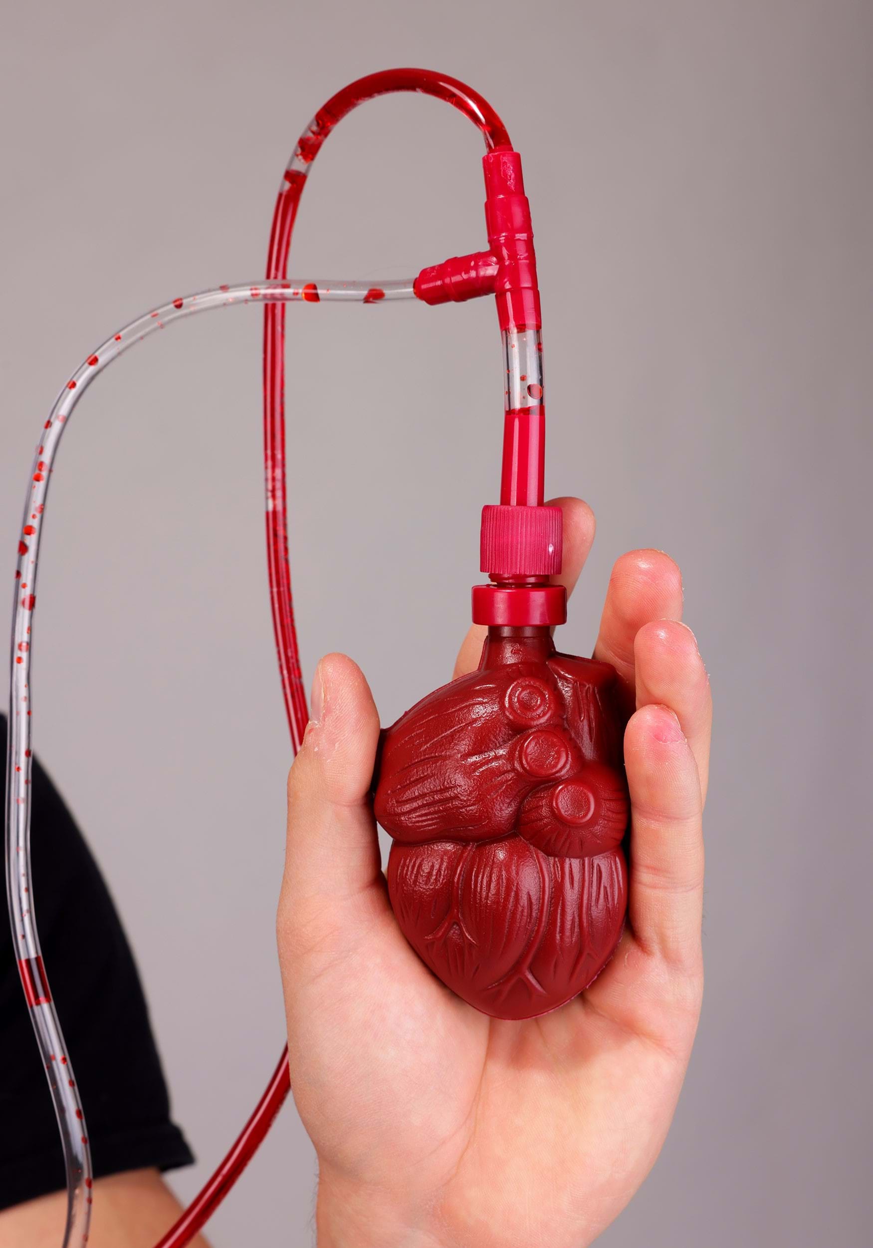 - 2 ounces of blood in the heart pumps through the tubing and into the mask for bloody look