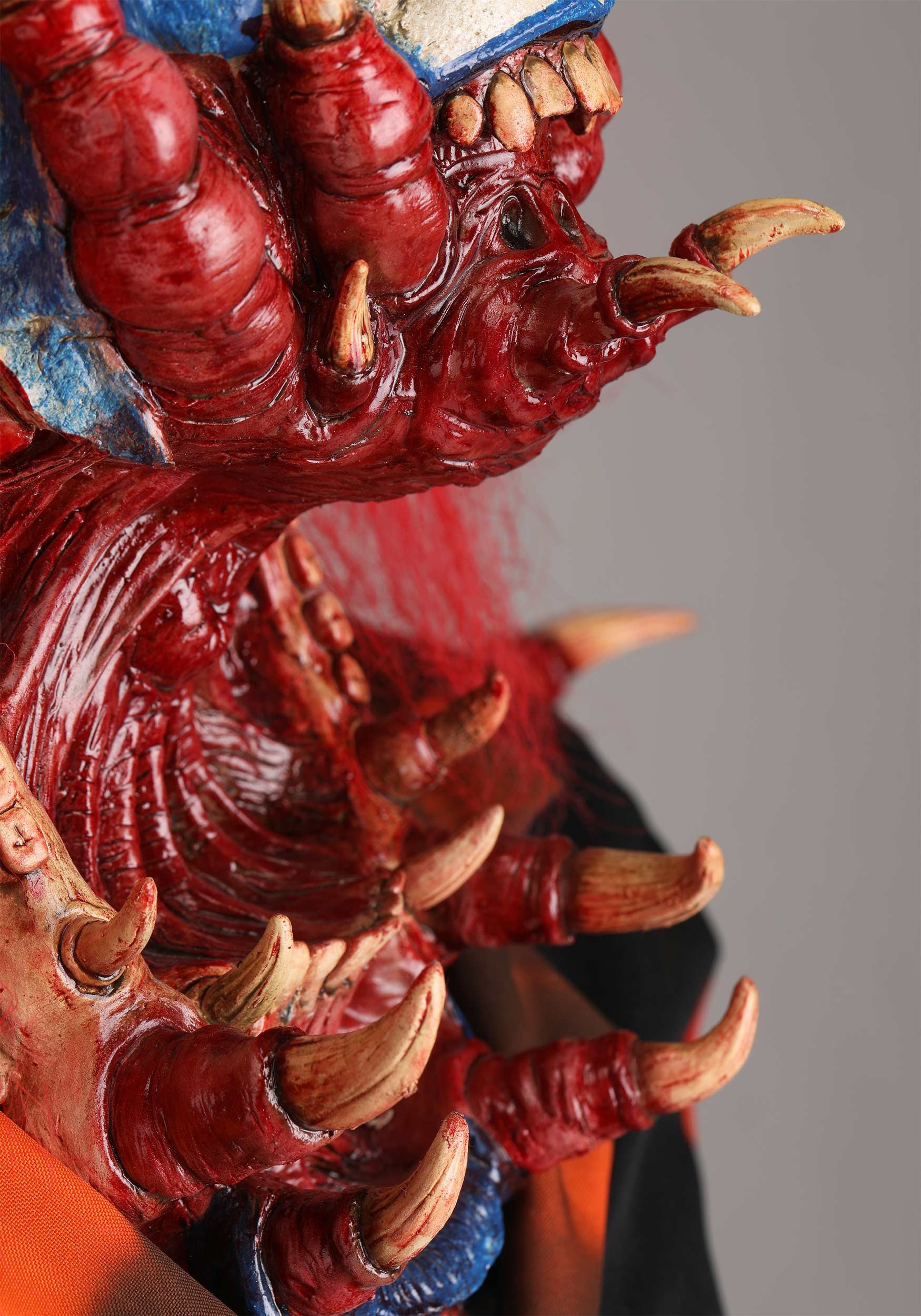 - Pullover molded latex mask has eye holes, nostrils, mouth hole and ear holes may allow for limited vision