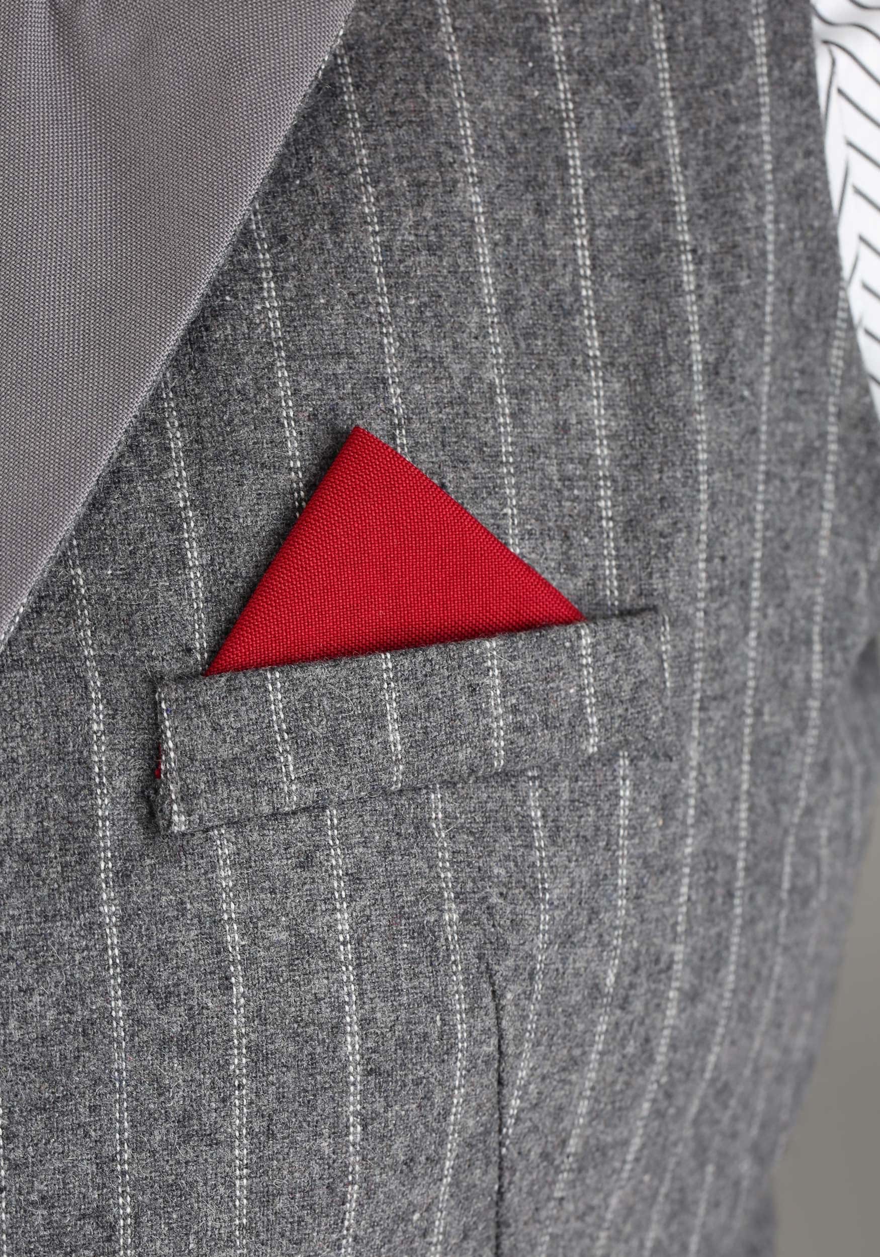 - Shirt, vest, collar, and tie: 100% polyester, Pants: 63% polyester, 24% acrylic, 9% nylon, 4% wool, 1% rayon worsted, broadcloth and satin fabrics
