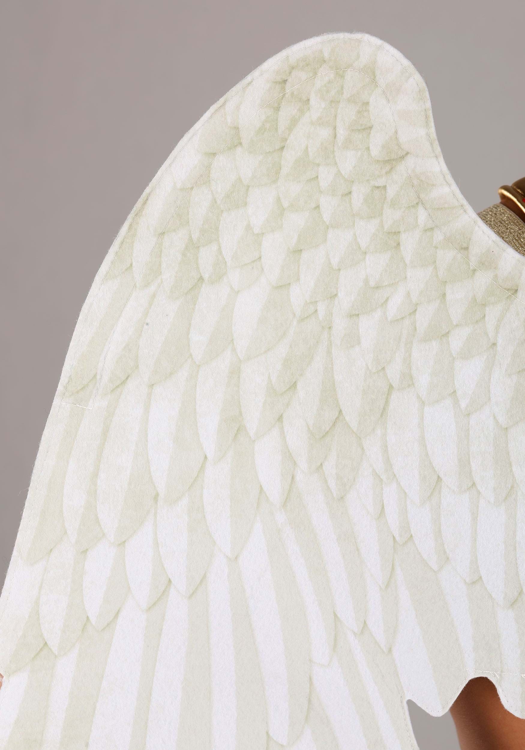 • Felt wings with sublimated print has posable wire in the top edging, secures to the back of the harness with hook and loop fastener