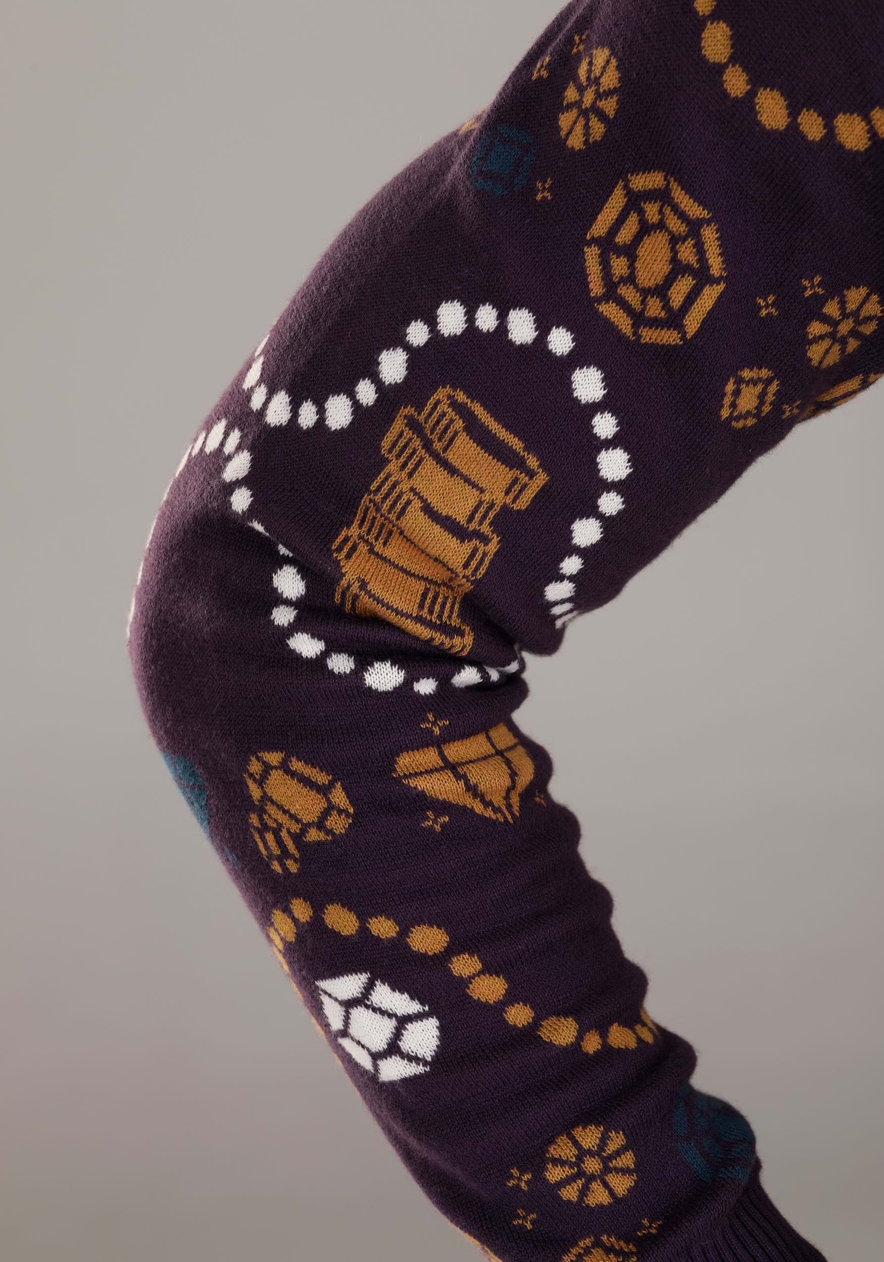 The Made By Us sweater's muted color palette knits together to depict a Niffler holding its precious gold coin against an ornate background. The rib-knit cuffed sleeves feature an all-over design of coins, pearl strands, and jewels. Available in sizes up to 3X, this sweater offers a cozy fit for every fan!